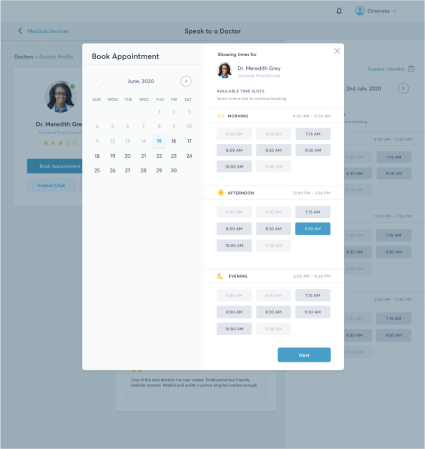 Upcoming appointments show you a list of all of your upcoming booked appointments with date, time and Doctor booked.